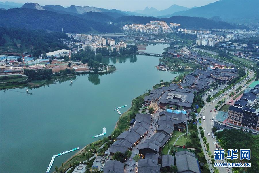 7月2日无人机拍摄的丹寨万达小镇。 2017年7月,贵州省丹寨县的丹寨万达小镇对外开放。两年来,丹寨万达小镇游客接待量持续增长,为700余名贫困户提供就业岗位,有力助推了丹寨县的脱贫攻坚工作。新华社记者欧东衢摄