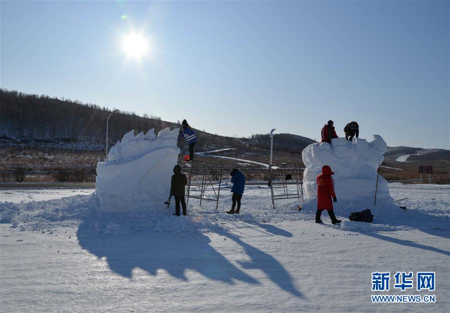 12月4日,参赛选手在创作雪雕作品。12月3日,呼伦贝尔(牙克石)第三届国际雪雕邀请赛在内蒙古牙克石市凤凰山雪谷广场开赛。来自国内外的20支队伍参加为期四天的角逐。新华社记者 徐钦 摄