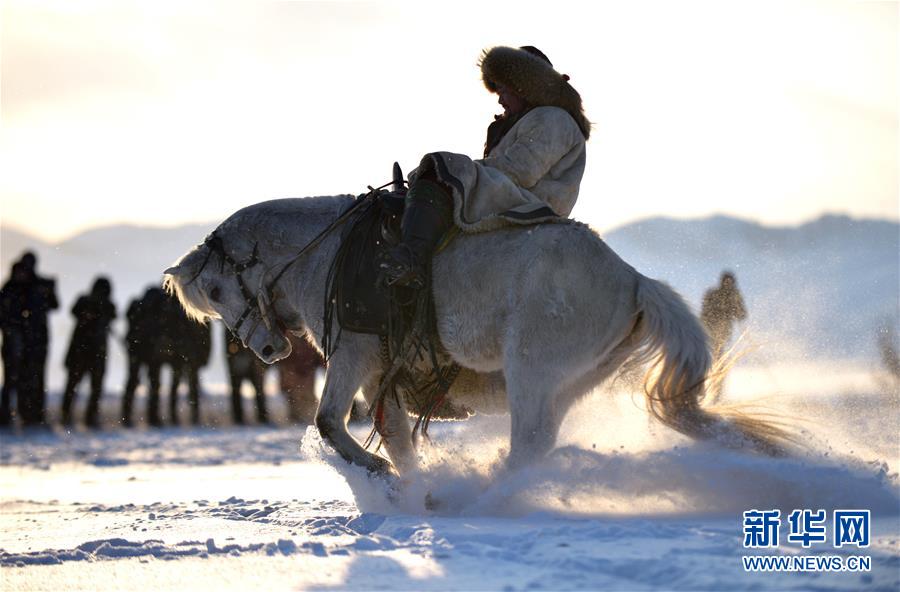 1月6日,演员在乌兰布统草原马文化摄影节上进行骑马表演。当日,第三届乌兰布统(坝上)草原马文化摄影节在内蒙古克什克腾旗乌兰布统草原开幕,骑马拾哈达、骑马表演、套马表演等具有民族风情的活动吸引众多游客和摄影爱好者前来观赏、拍摄。该摄影节是克什克腾第十三届冬季旅游节活动之一,将持续至1月8日。新华社记者 徐钦 摄