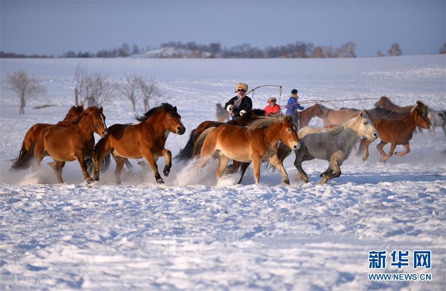 1月6日,演员在乌兰布统草原马文化摄影节上进行骑马表演。当日,第三届乌兰布统(坝上)草原马文化摄影节在内蒙古克什克腾旗乌兰布统草原开幕,骑马拾哈达、骑马表演、套马表演等具有民族风情的活动吸引众多游客和摄影爱好者前来观赏、拍摄。该摄影节是克什克腾第十三届冬季旅游节活动之一,将持续至1月8日。新华社记者 徐钦 摄