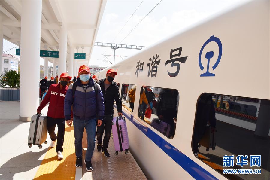 2月19日,务工人员准备搭乘专列返岗复工。当日,云南省楚雄彝族自治州“定制”高铁专列前往广东,运送约600名务工人员返岗复工。这是疫情发生以来,楚雄彝族自治州统一组织返岗复工的第三批外出务工人员。新华社发(王洪 摄)
