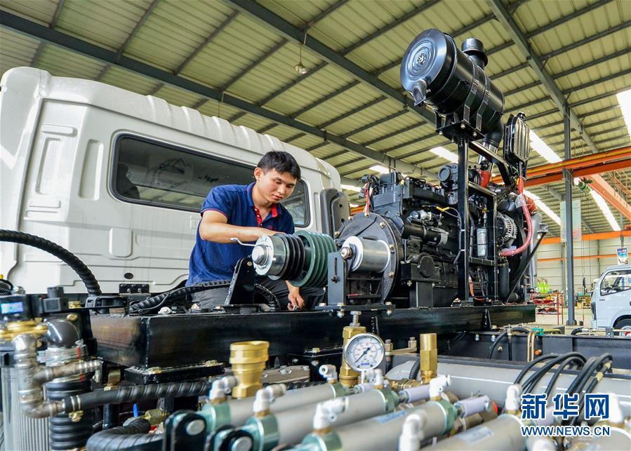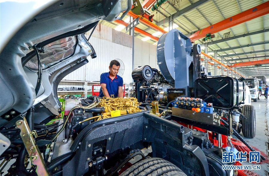 7月17日,工人在邯郸市肥乡区一家装备制造企业生产车间调试“雾炮车”。 近年来,河北省邯郸市肥乡区坚持培育发展先进装备制造产业,打造以雾炮车、环保汽车、精密铸件为核心的特色装备制造产业基地,助推经济结构优化升级。目前,肥乡区规上装备制造业企业达24家。 记者 王晓 摄
