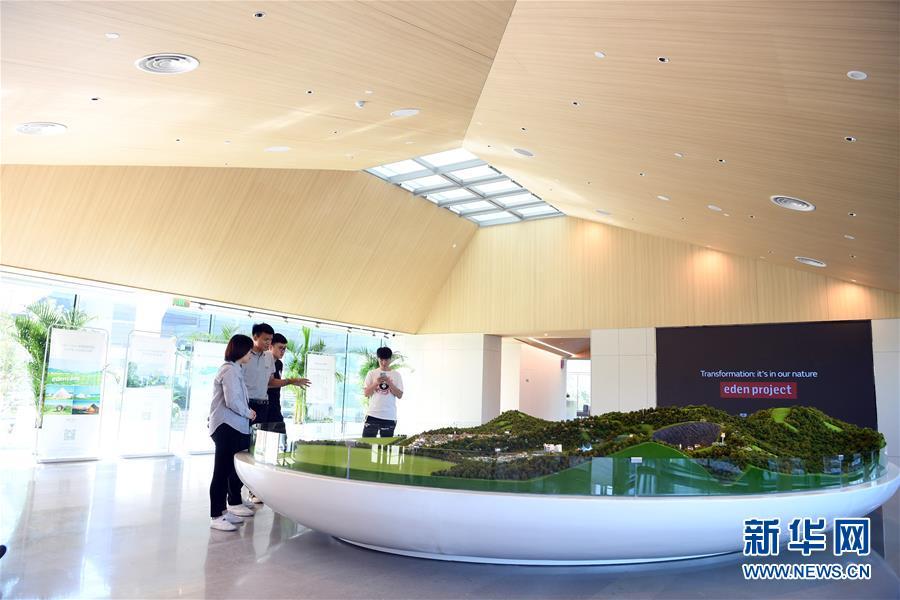 9月1日,在天津市蓟州东方伊甸园特色小镇展示中心,游客观看项目沙盘。 记者 马平 摄