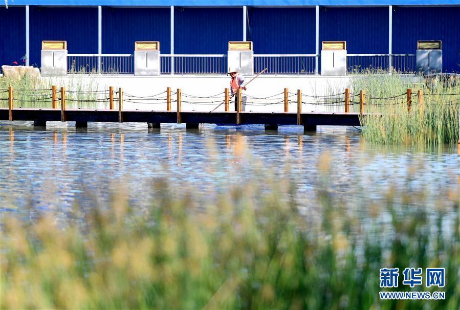 9月16日,工作人员在文安县文礼公园清理水面杂物。 近年来,河北省廊坊市文安县大力推进水环境综合治理工程,将水生态建设与民生改善、产业发展、城市特色相结合,形成健身、休闲、旅游功能于一体的景观环境,为居民建设生态美好家园,助力绿色发展。 记者 王晓 摄