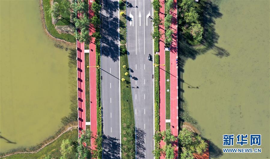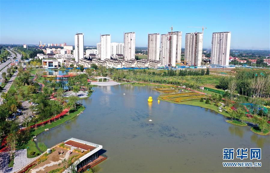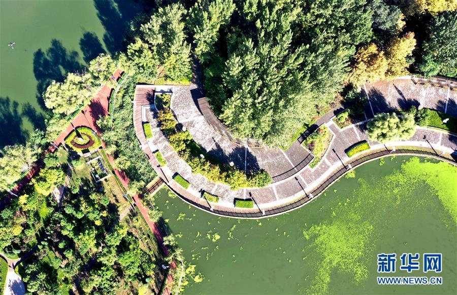 9月16日拍摄的文安县文礼公园一角(无人机照片)。 近年来,河北省廊坊市文安县大力推进水环境综合治理工程,将水生态建设与民生改善、产业发展、城市特色相结合,形成健身、休闲、旅游功能于一体的景观环境,为居民建设生态美好家园,助力绿色发展。 记者 王晓 摄