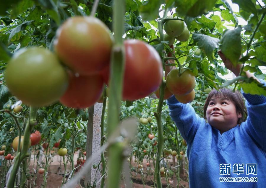 11月17日,河北省顺平县白云乡常大村的一位农民在大棚内管理西红柿。