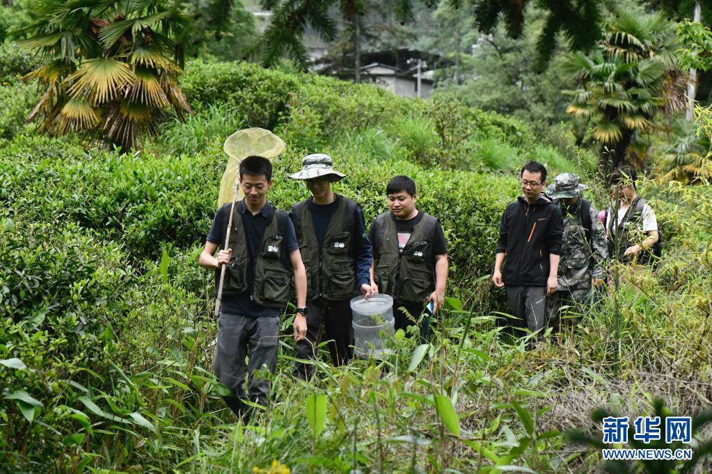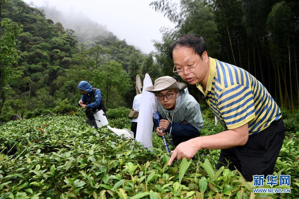 5月17日,华南农业大学昆虫学系教师、博士生导师王敏(右)在武夷山国家公园大竹岚带领昆虫专项科考队员开展调查。