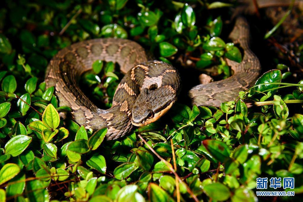 5月16日,武夷山国家公园桐木村附近山林中一只颈棱蛇在草间停留。