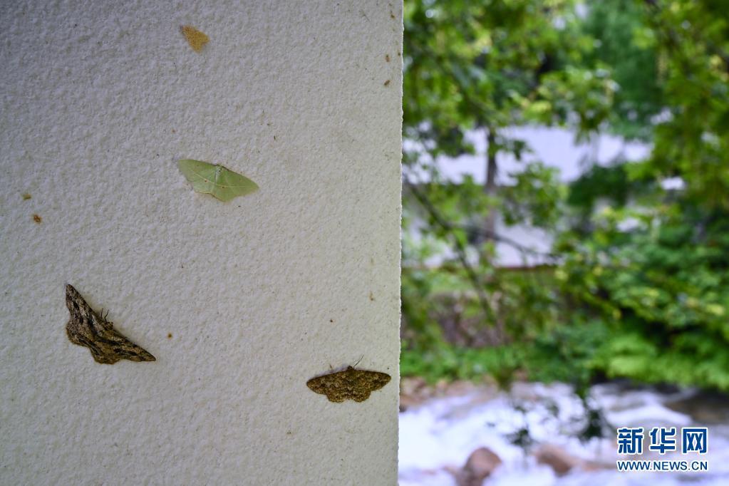 5月18日,几只飞蛾在武夷山国家公园建筑墙壁上停留。