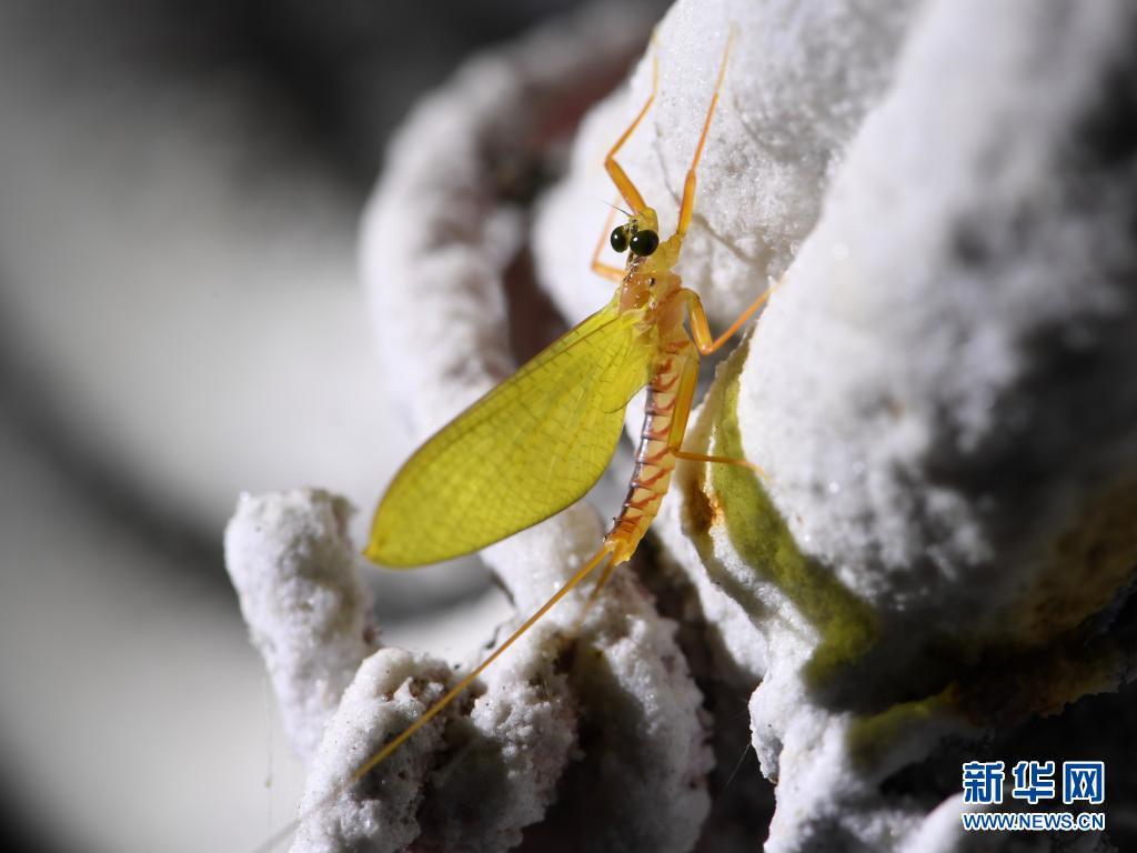 5月17日,武夷山国家公园内一只蜉蝣停留在桐木村墙外。