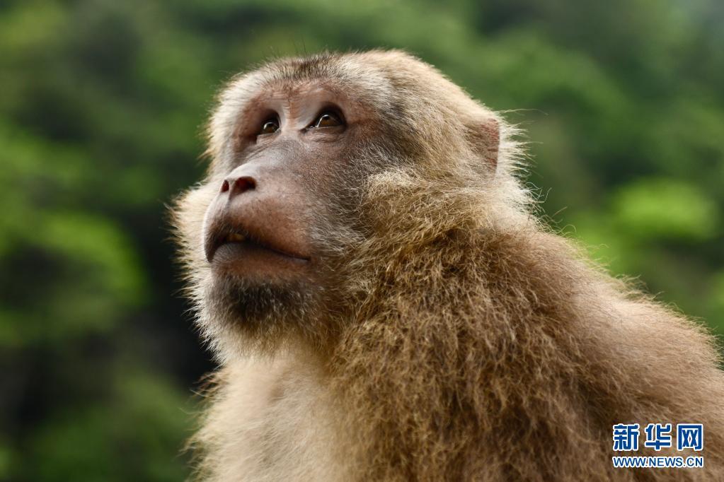 5月16日,武夷山国家公园一只野生藏酋猴向远处张望。