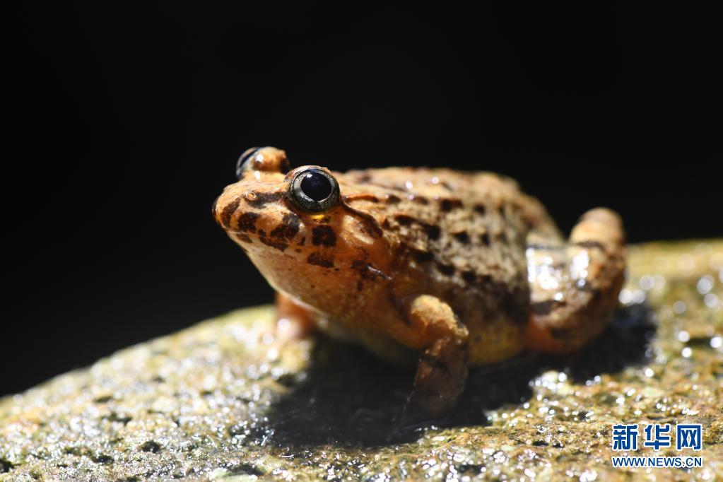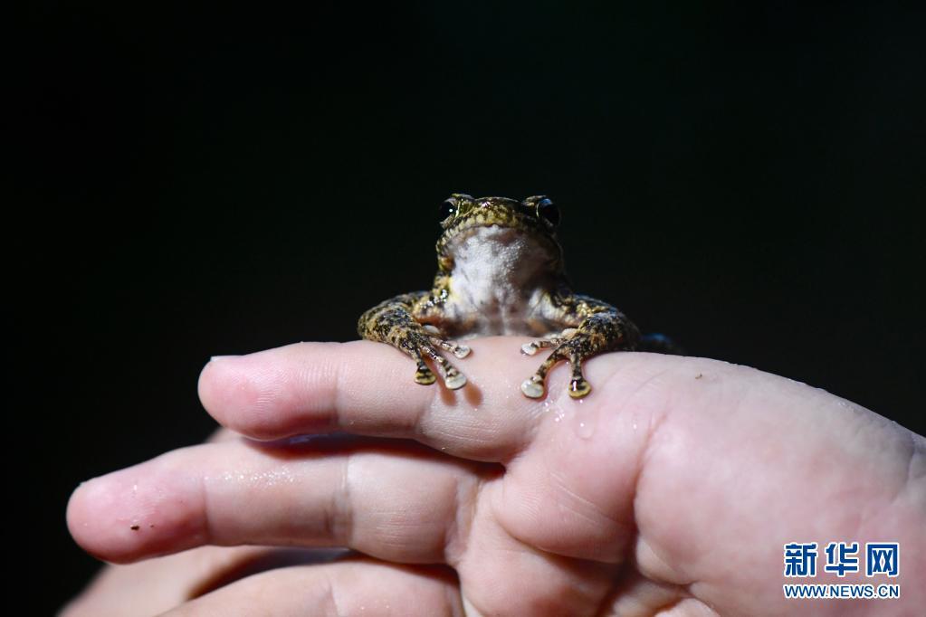 5月16日,武夷山国家公园两栖爬行类专项科考队员展示在挂墩村附近山林发现的武夷湍蛙。