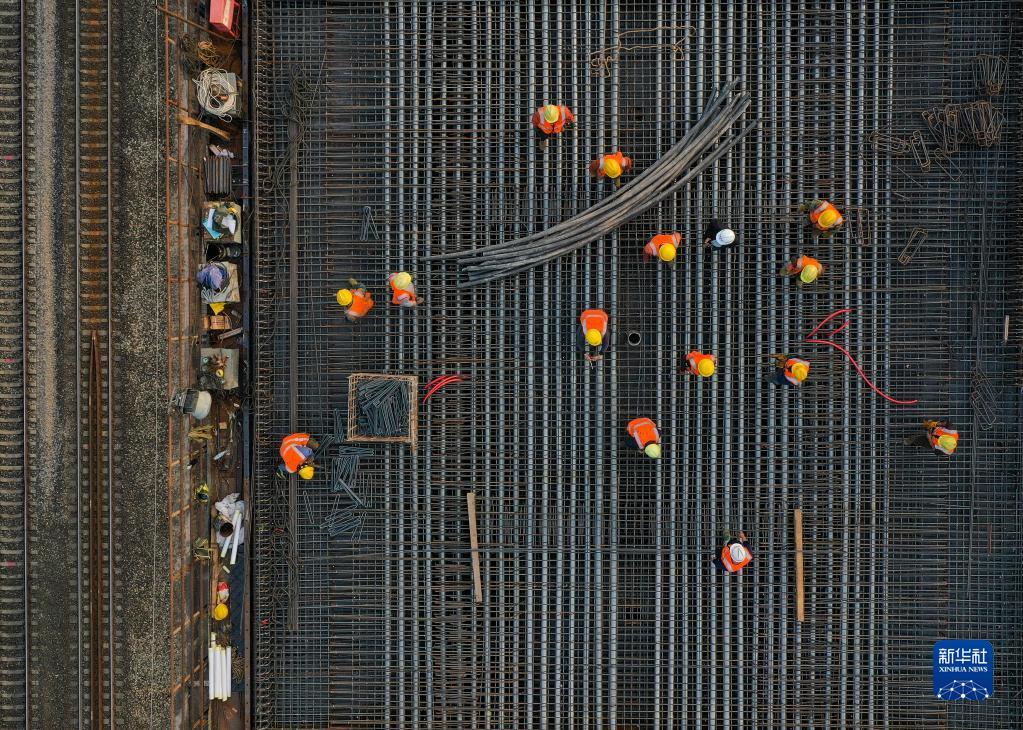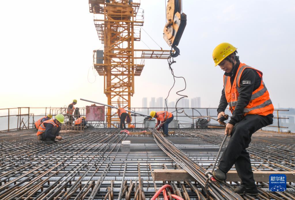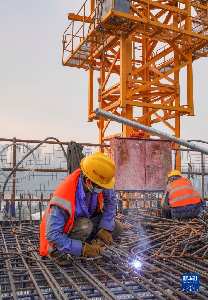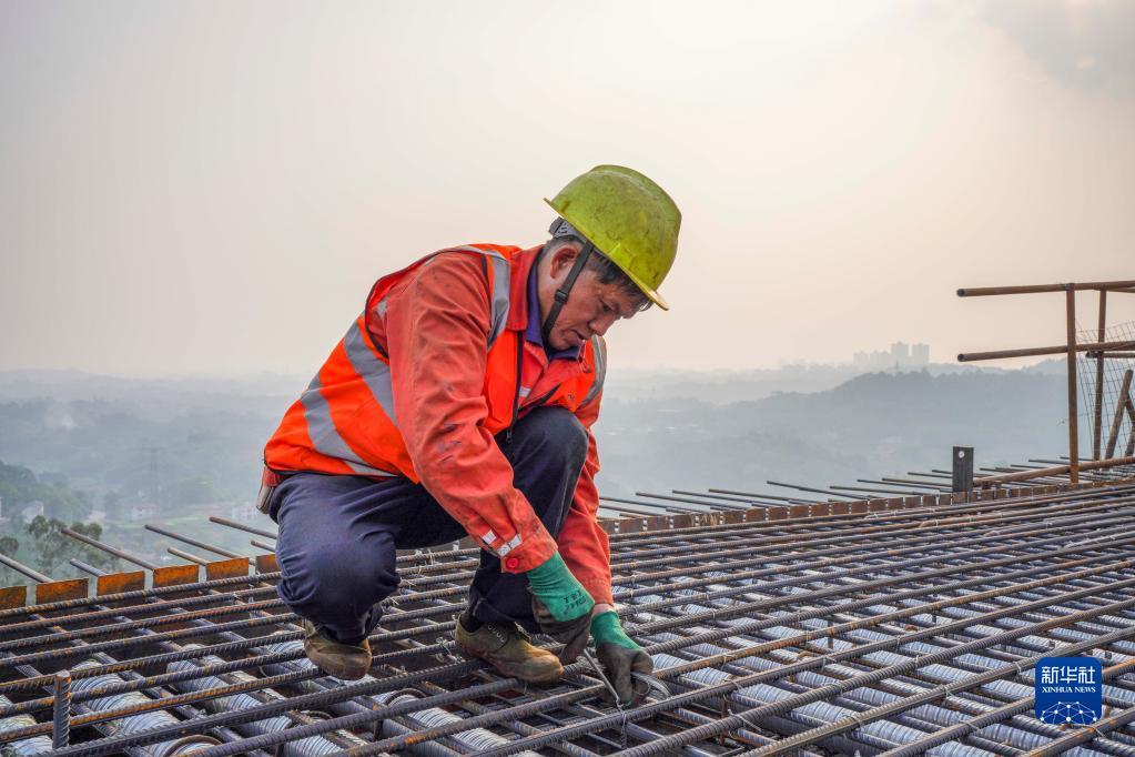 11月28日,工人在渝昆高铁川渝段华福特大桥施工现场作业。