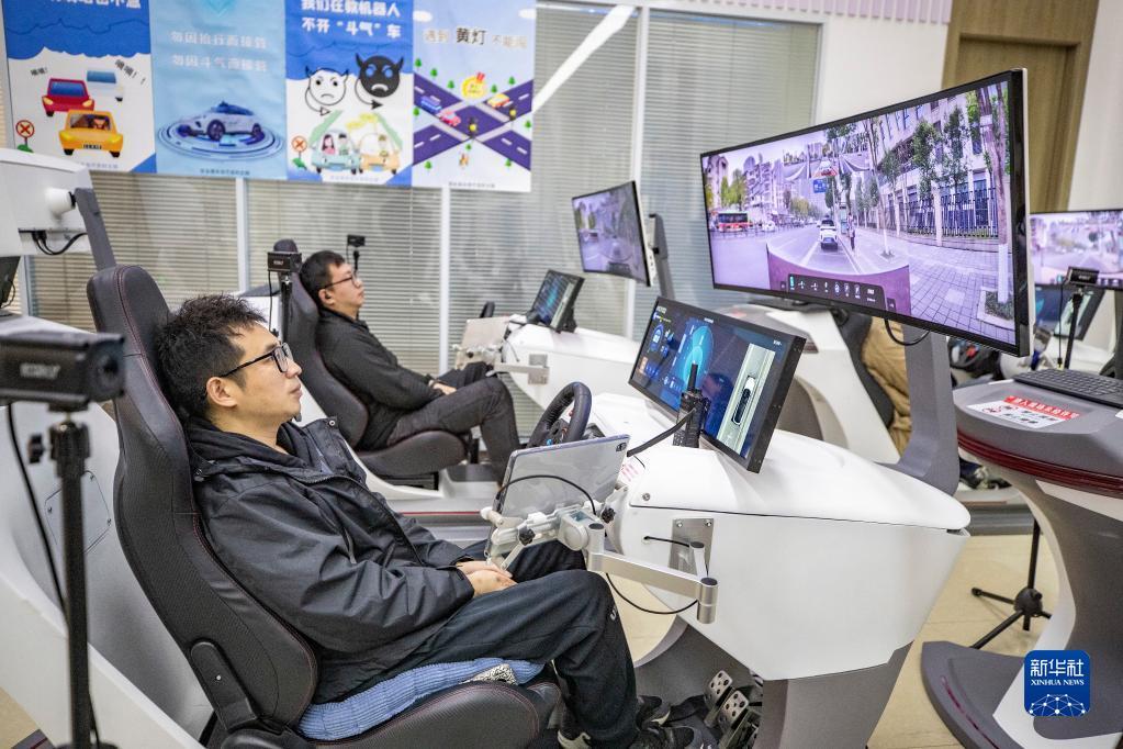 2月23日,在重庆云谷·永川大数据产业园百度智行信息科技(重庆)有限公司,员工们通过5G云代驾舱远程实时监控运行中的车内无安全员的自动驾驶车辆,确保车辆运行安全。