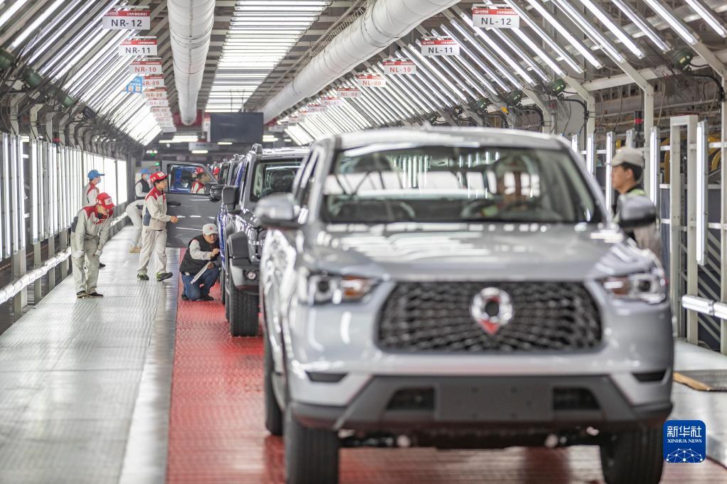 3月1日,在长城汽车重庆永川生产基地总装车间,出口澳大利亚的右舵车排队等待下线前的检测。