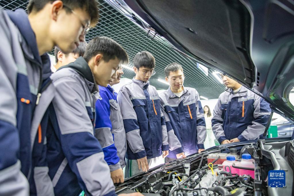 2月22日,在重庆城市职业学院“陈志军汽车维修工国家级技能大师工作室”,学生们在老师的带领下学习新能源汽车维修。
