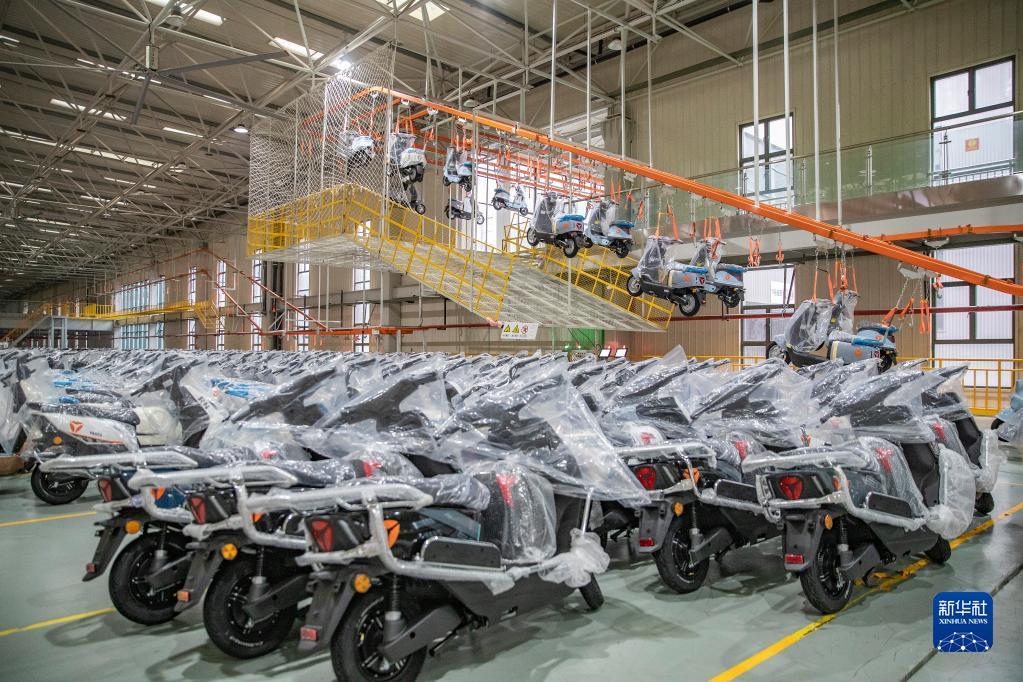 2月22日,在雅迪科技集团重庆永川电动车生产基地,智能化运输线将成品电动车运往仓库。