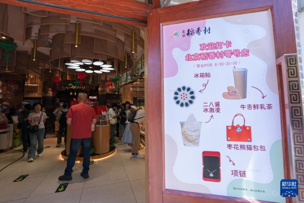 5月1日,游客在位于东四北大街152号的北京稻香村“零号店”外排队等候。2021年9月,北京稻香村“零号店”在东四北大街152号开张,售卖特色糕点和京味茶饮,成为集民俗、美食、文化于一体的传统食品文化体验馆。