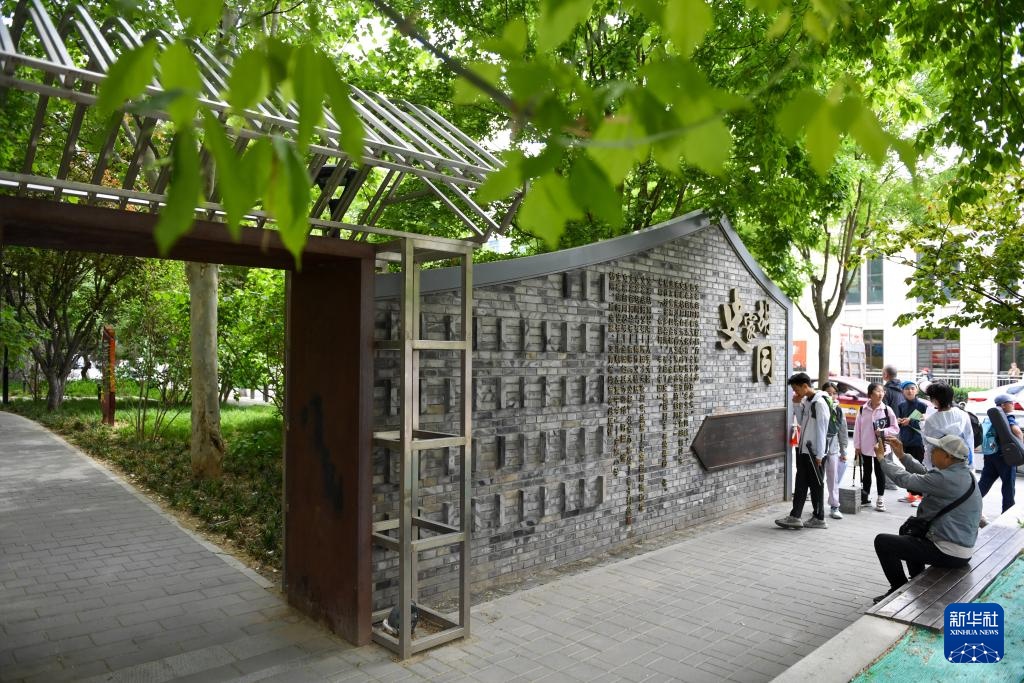 5月1日,游客在位于东四南大街和史家胡同路口处的“微花园”参观游览。