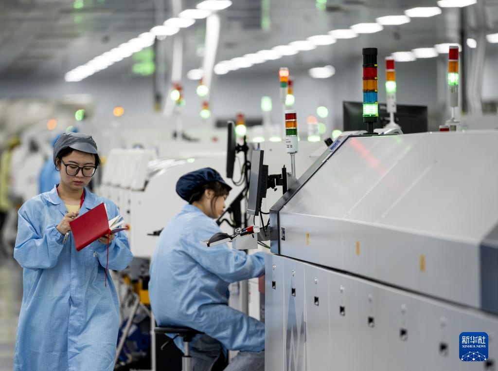 8月1日,技术工人在锐捷网络股份有限公司打造的全新数字化智能工厂生产线上生产网络通讯设备。