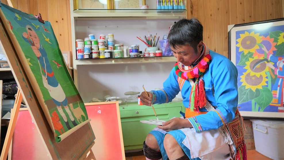 傈僳族画家余全发创作的《福中乐》入选了