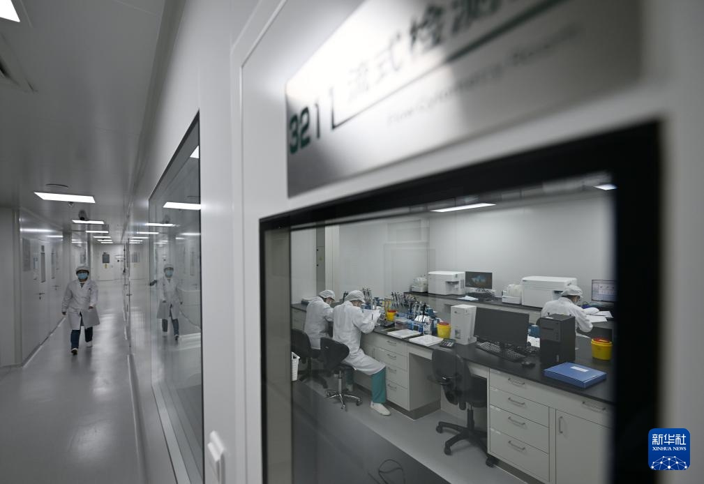 3月21日,合源生物科技(天津)有限公司工作人员在生产基地的检测室进行检测。