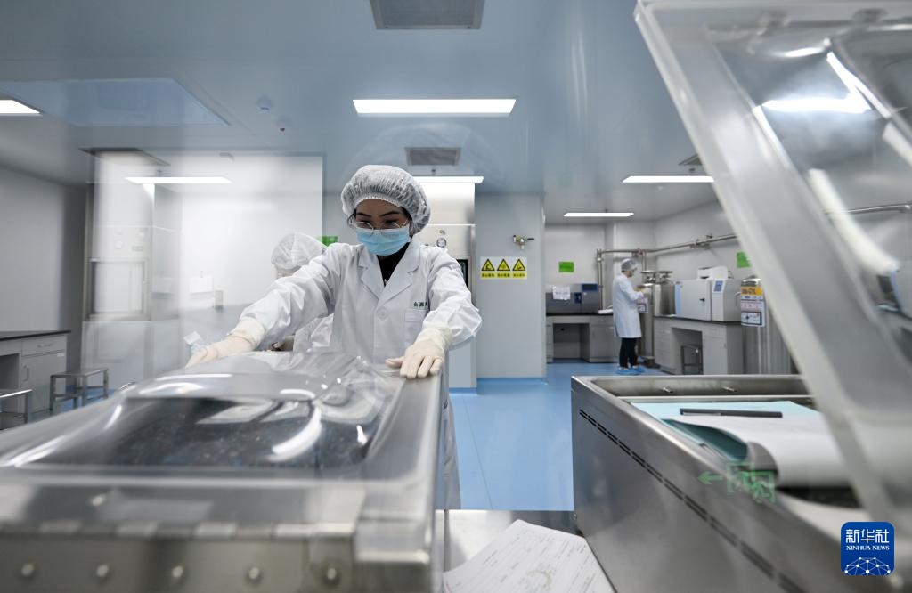 3月21日,工作人员在合源生物科技(天津)有限公司生产基地细胞培养室内工作。