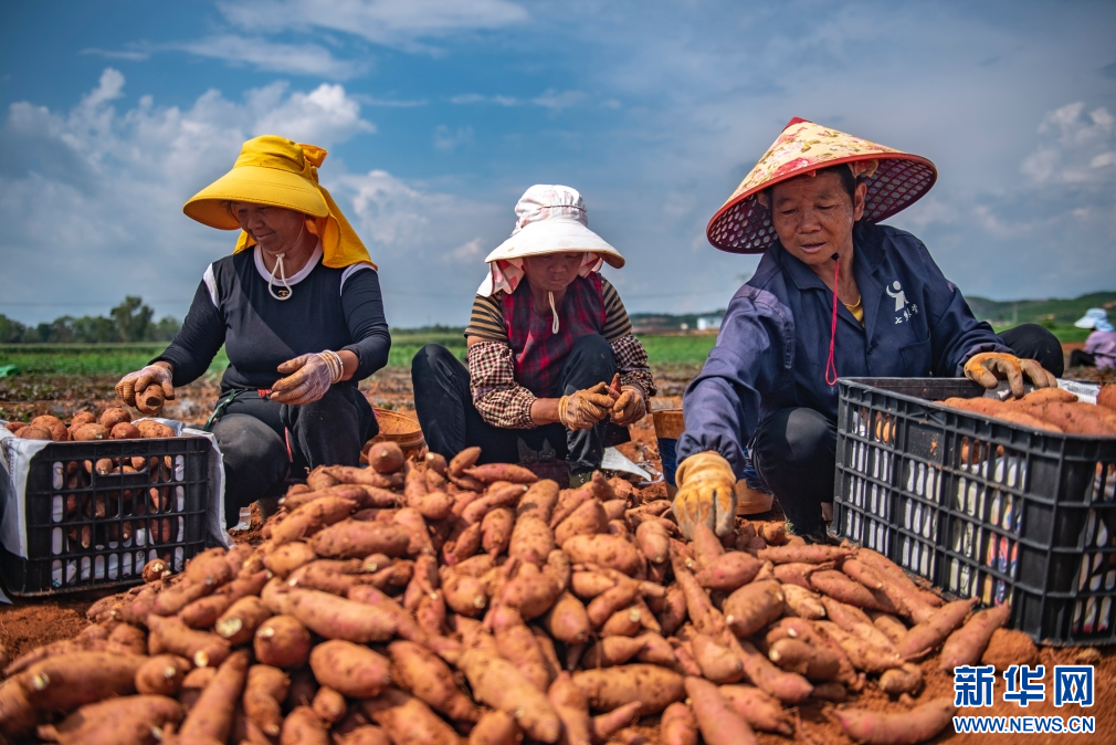 眼下,在云南省文山壮族苗族自治州砚山县平远镇石碑寨村,一颗颗丰硕饱满的红薯破土而出,村民们忙着分拣、装箱、装车,一派繁忙丰收景象。近年来,砚山县大力发展红薯等特色产业,积极推广种植规模化、生产机械化以及产品有机化,促进农业增产,农民增收。(熊平祥)