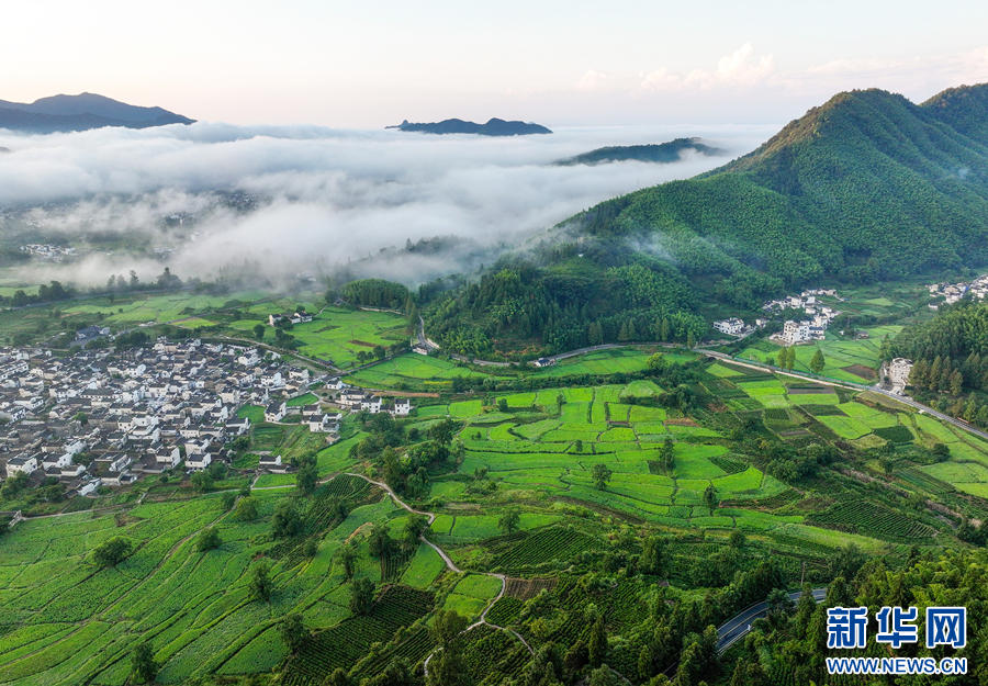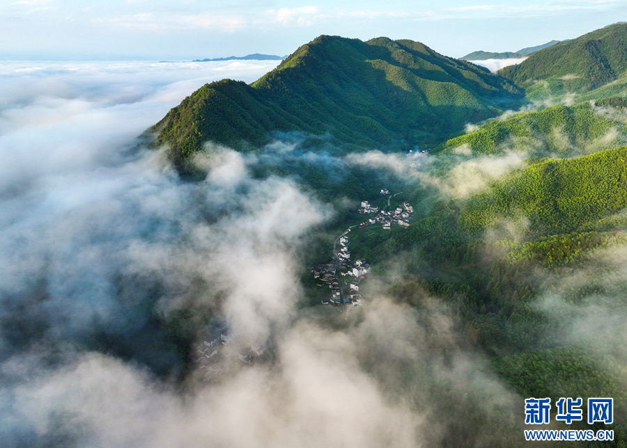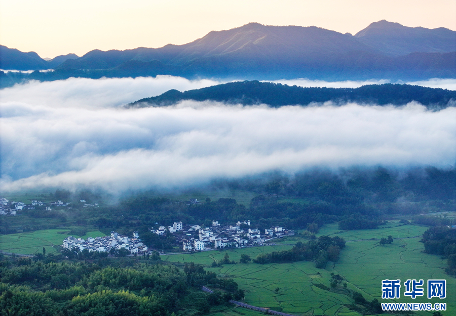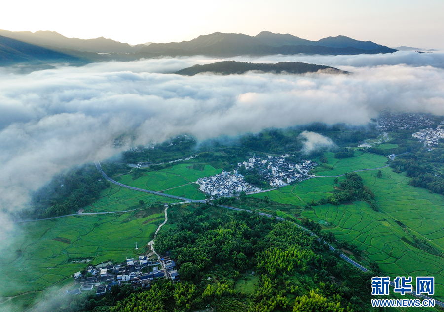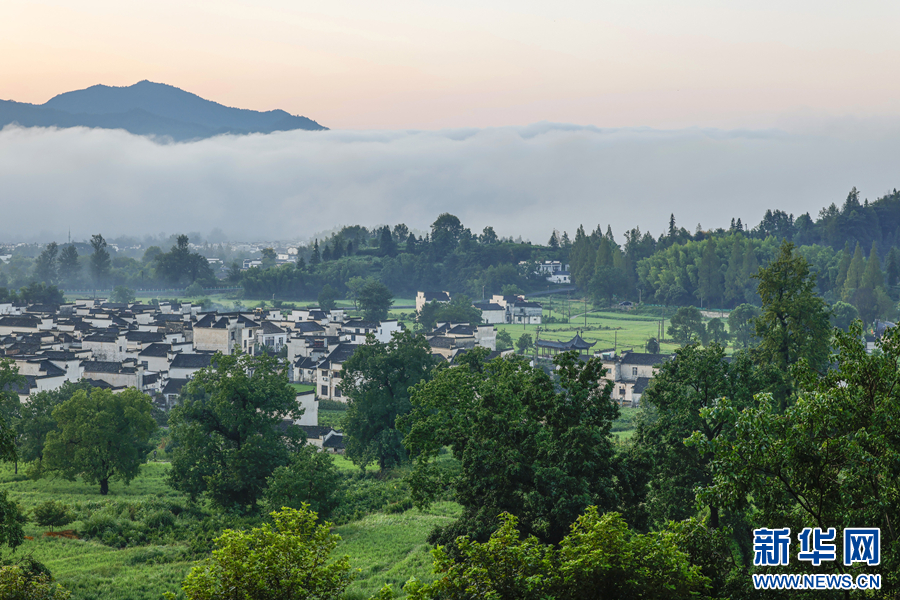 近日,安徽省黟县卢村雨后放晴,出现大面积平流云景观,鳞次栉比的徽派古民居若隐若现,宛如一幅美丽的乡村画卷。(施亚磊)