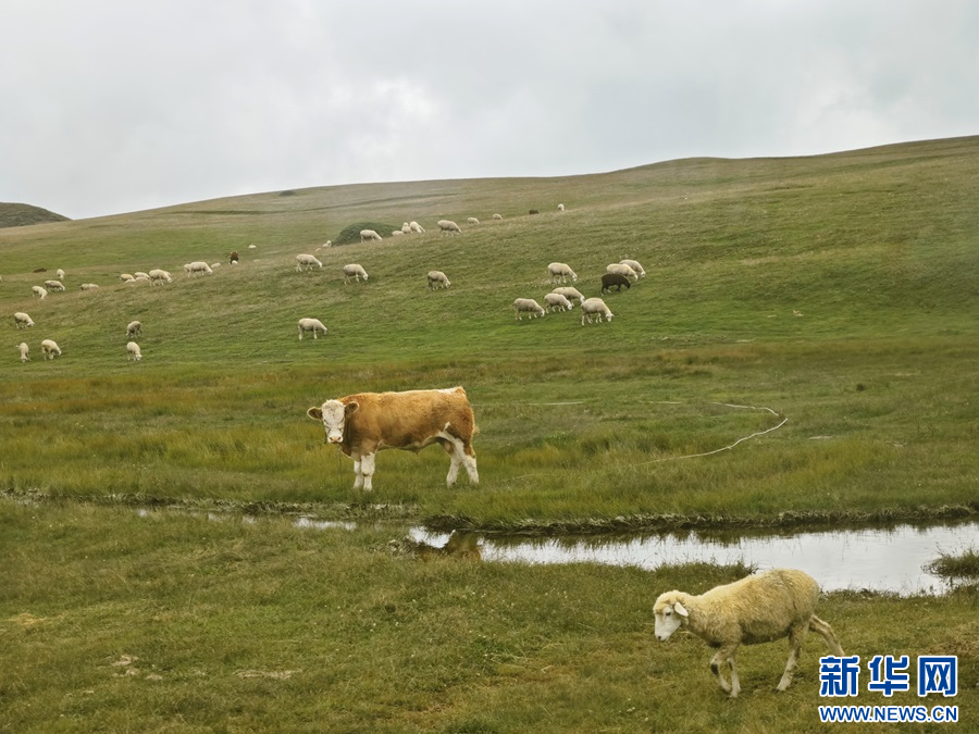 羊群、牛马在草甸上低头吃草,还未被秋风扫净的野花点缀在一片苍绿中。9月17日下午,“旅居云南·心之所向”2025年“全国媒体达人云南行”宣传推广活动采风团来到云南省昭通市昭阳区云南大山包黑颈鹤国家级自然保护区。