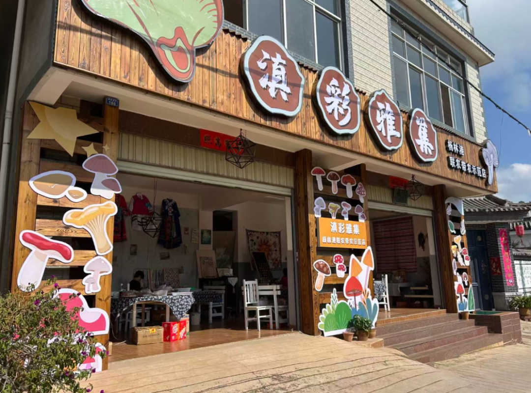2024年,董芊汝创立“滇彩雅物集”品牌,正式走上创业路。她把白族甲马的吉祥纹样绣在菌菇标本边框,用扎染布料包裹菌菇摆件的底座,甚至将经过固色防腐处理的新鲜菌子直接做成耳环吊坠。“灵感都来自杨林港村的日常,出门能看见阿婆织扎染,上山能采到野生菌,这些都是最宝贵的素材。”谈及未来,董芊汝眼里满是憧憬:“打算把院子扩建成更大的体验工坊,再开发菌子香包、扎染桌布这些新品。”她坦言,昆明的包容让“旅居创业者”找到了扎根的土壤。