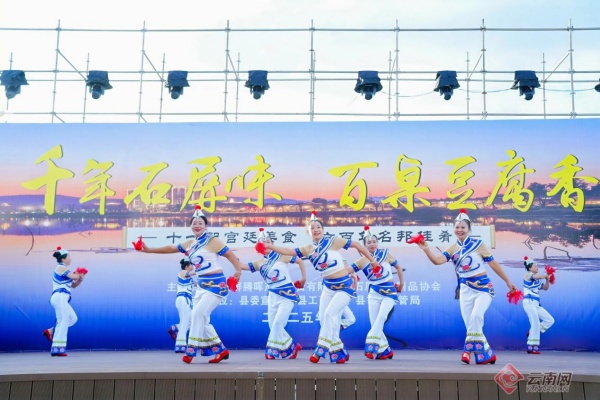 石屏豆腐文化源远流长,其独特的制作工艺成就了醇香细腻的口感,被誉为“舌尖上的非遗”。如今,石屏豆腐已从街边小吃发展成为国家地理标志产品和一张响亮的文旅名片。活动现场,百余张宴席座无虚席,宴会菜单以豆腐为核心,集中展示了凉拌非遗腐竹、汽锅黄金腐皮卷、浇汁包浆豆腐等十余道特色菜肴,彰显了石屏“中国豆腐之乡”的深厚底蕴和味蕾魅力。活动期间穿插由当地群众带来的精彩文艺表演,《巅峰打跳》《祝福祖国》等文艺节目将现场热烈气氛推向高潮。