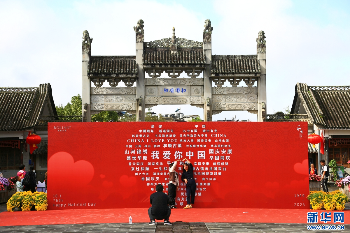 10月4日,游客在云南省腾冲市和顺古镇打卡游玩。(赵辉 摄)
