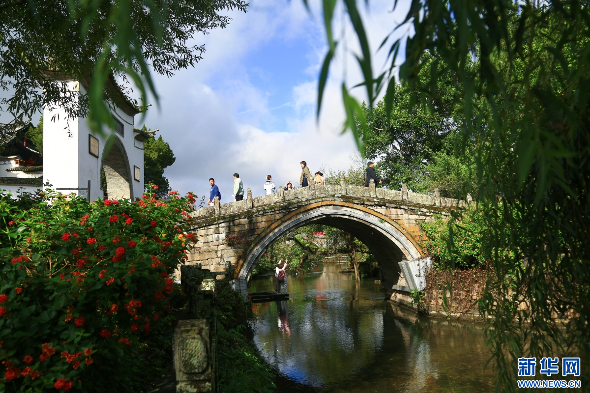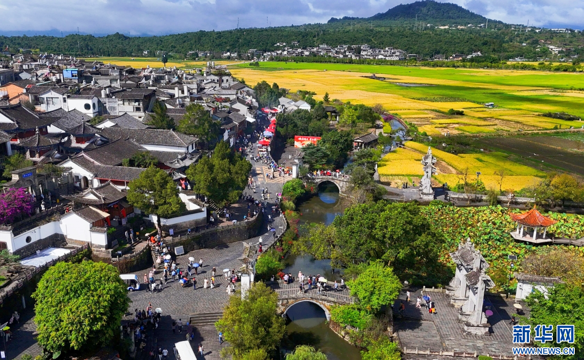 国庆中秋假期,人们来到云南省腾冲市和顺古镇游玩,游田园、逛古镇、看演出,享受假日快乐时光。(赵辉)