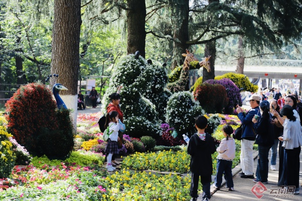 记者看到,菊展主会场与动物区堪称人气最旺的区域。菊展以东门入口为游览起点,检票口外“大象一家”呆萌可爱。进入园内,“犀牛家族”威风凛凛,还有憨态可掬的大熊猫造型、优雅的长颈鹿造型、美丽的孔雀造型等,这些“长花”的“萌兽”组成一条鲜花动物长廊。本次金秋菊展展出菊花品种近百种,游客们要排队才能抢占最佳“打卡”机位。而在真正的萌兽区,游客必经之地猴山,猴群正上演着“趣味大戏”,狮子、老虎、大象等区域同样人气爆棚。