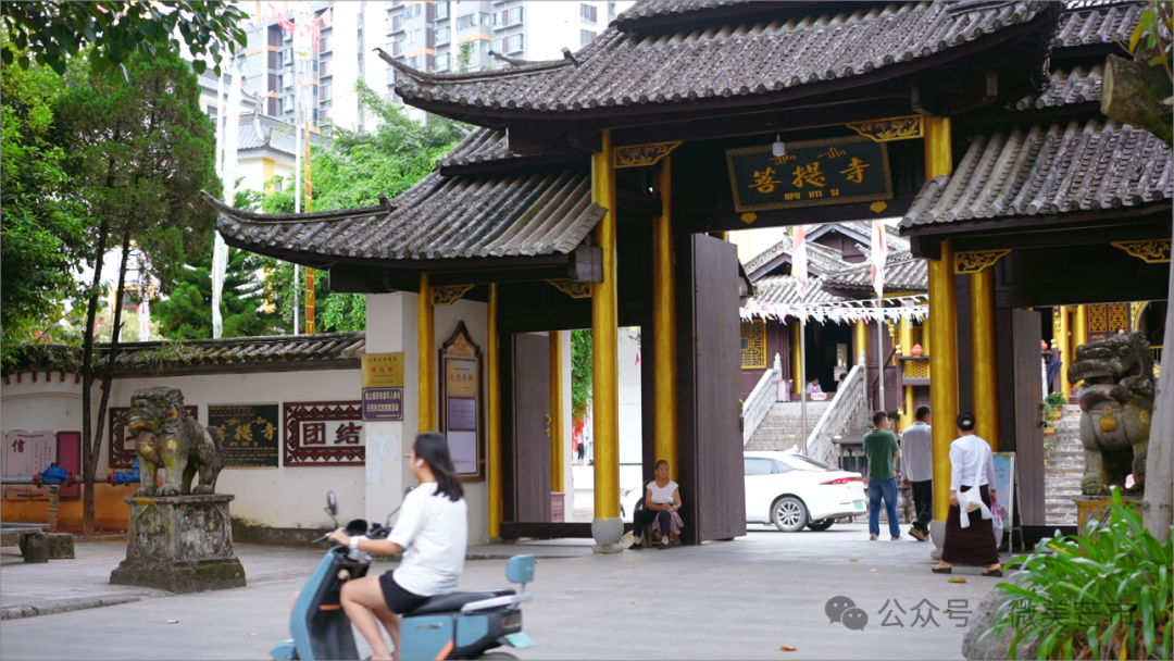 菩提街原名正南路,全长528米,北起阔时路,南至斑色路,2006 因街上的菩提寺而更名。2020年,它被纳入芒市“美丽县城”市政道路环线示范段,外立面改造后彻底焕新。
