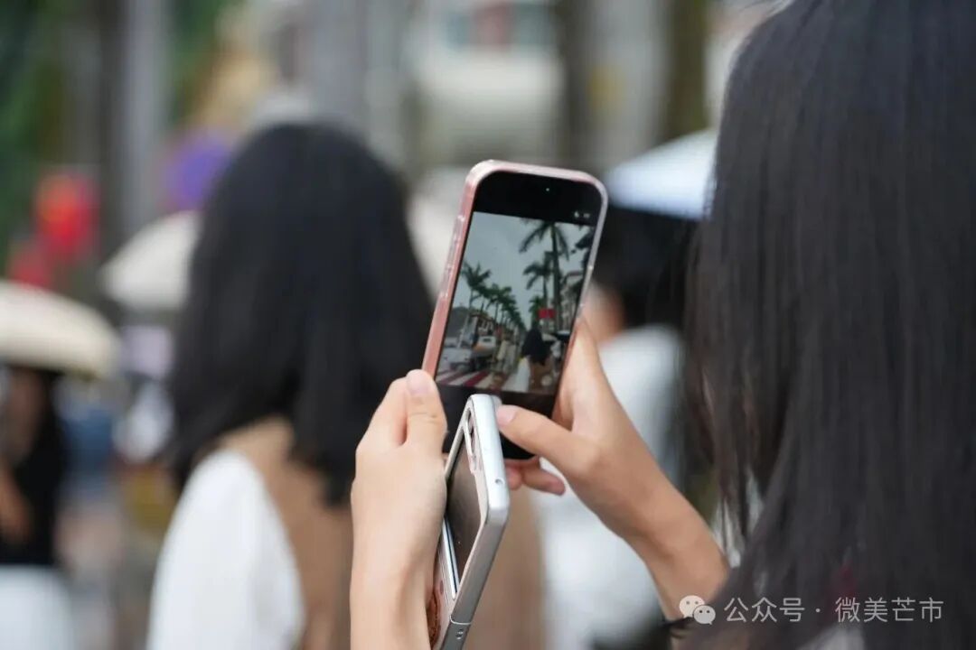 国庆中秋长假期间,即使偶有阵雨影响出行,菩提街依旧热度不减,街道两侧都是前来打卡拍照的游客。“我的好朋友是云南的,我到芒市旅游她给规划了一定要来这里拍照,我自己也刷到了芒市文旅的视频推荐,就特意带了相机过来看看。这里的棕榈树充满了亚热带风情,非常有意思!”来自上海的游客袁女士说道。