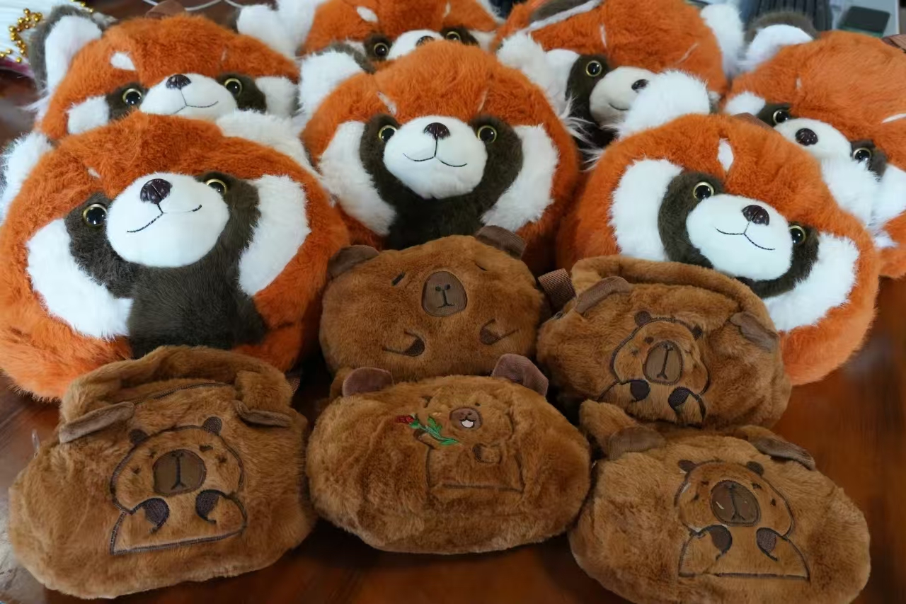 在出口处的文创馆内,许多家长带着小朋友正在挑选文创产品,萌趣十足的卡皮巴拉发箍、憨态可掬的小熊猫背包、毛茸茸的小熊猫玩偶等产品都让大朋友小朋友们爱不释手。“公园里面的小动物都非常的可爱,它们的毛都软软的、暖暖的,还会跟我互动,玩得很开心,这些文创产品也非常有趣,我最喜欢小熊猫了,实在是太可爱了!”来自重庆的游客小朋友卓轩霆抱着他刚刚买的小熊猫玩偶开心道。
