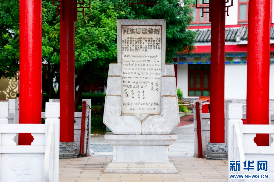 民族团结誓词碑巍然矗立(8月5日摄)。新华网发(刘云 摄)