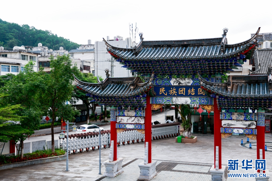 位于宁洱县城里的普洱民族团结园(8月5日摄)。新华网发(刘云 摄)