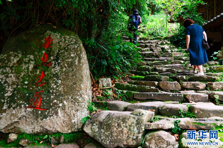 游客行走在茶马古道那柯里路段遗址上(8月5日摄)。新华网发(刘云 摄)