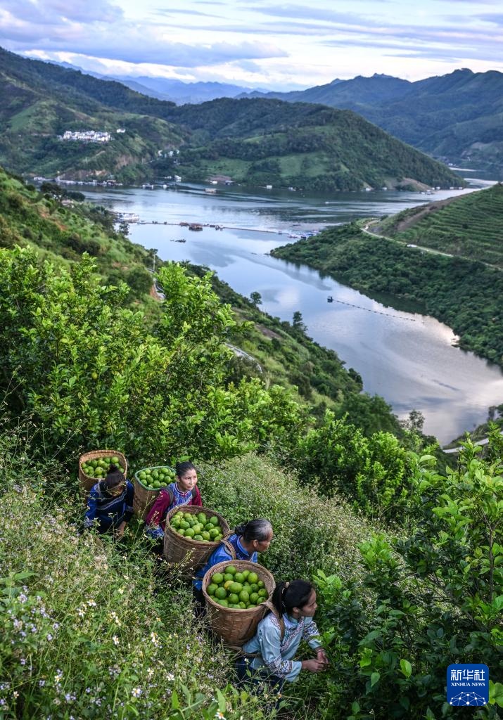 10月15日,村民在望谟县蔗香镇青柠檬基地搬运柠檬。
