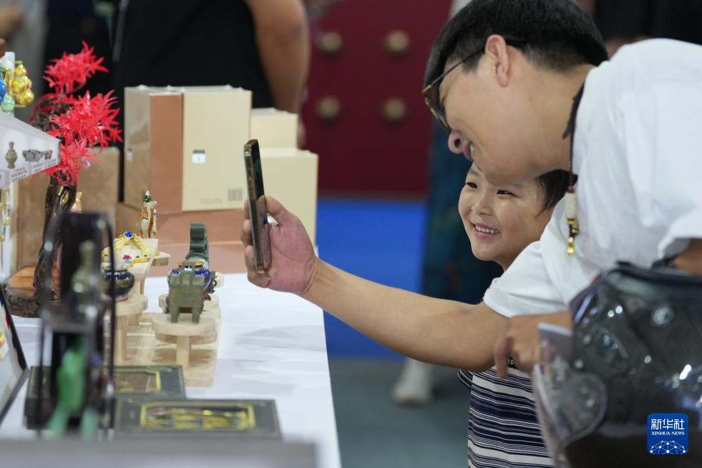 10月17日,观众在中外交流互鉴馆参观良渚文创产品展区。