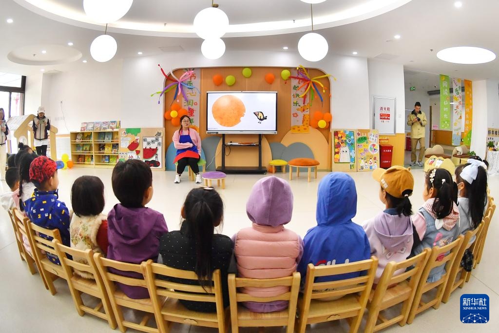 10月18日,小朋友在阅读馆聆听绘本故事。