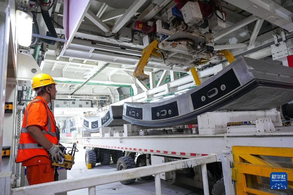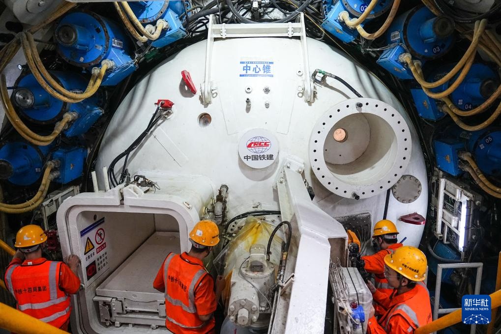 10月19日,中铁十四局工程人员在济南航天大道黄河隧道南线盾构段作业。