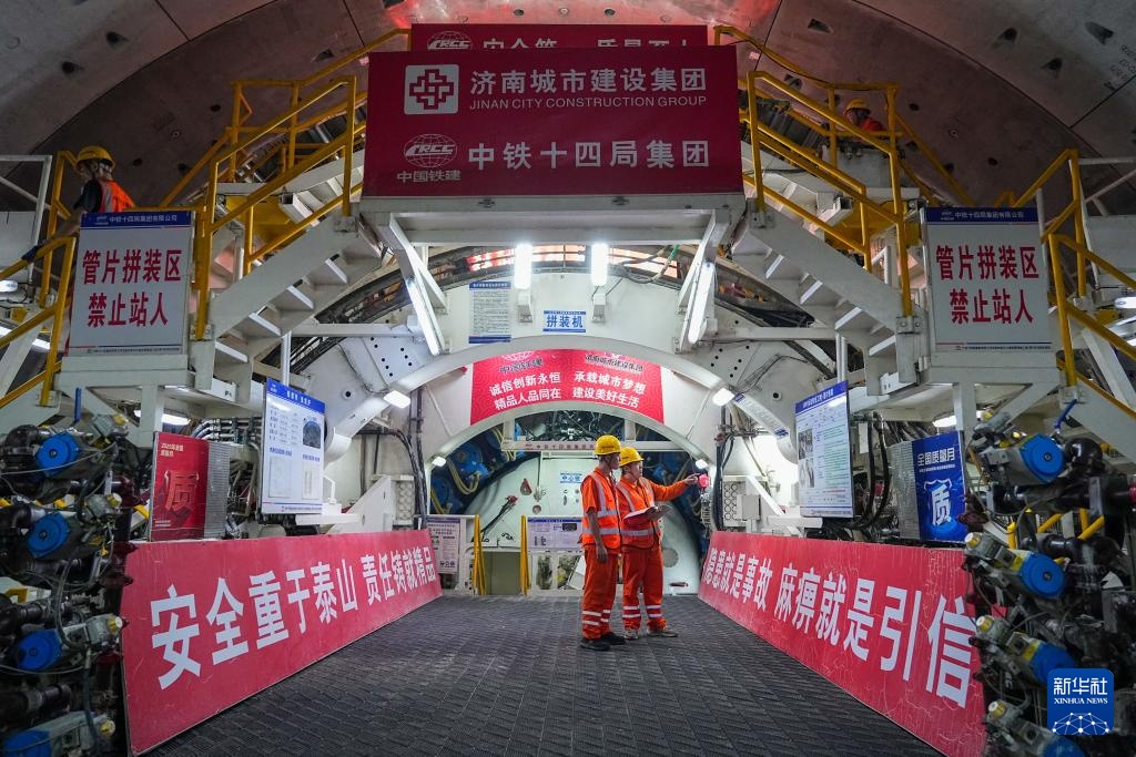 10月19日,中铁十四局工程人员在济南航天大道黄河隧道南线施工。