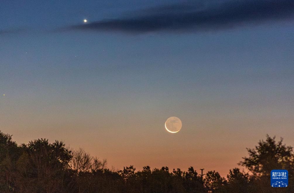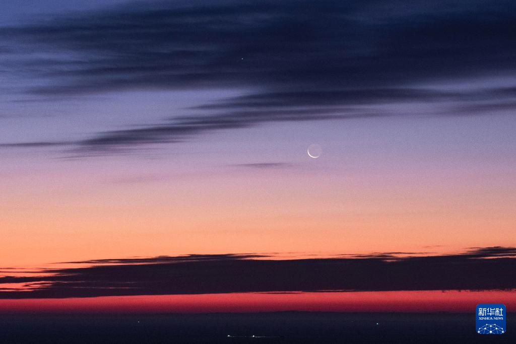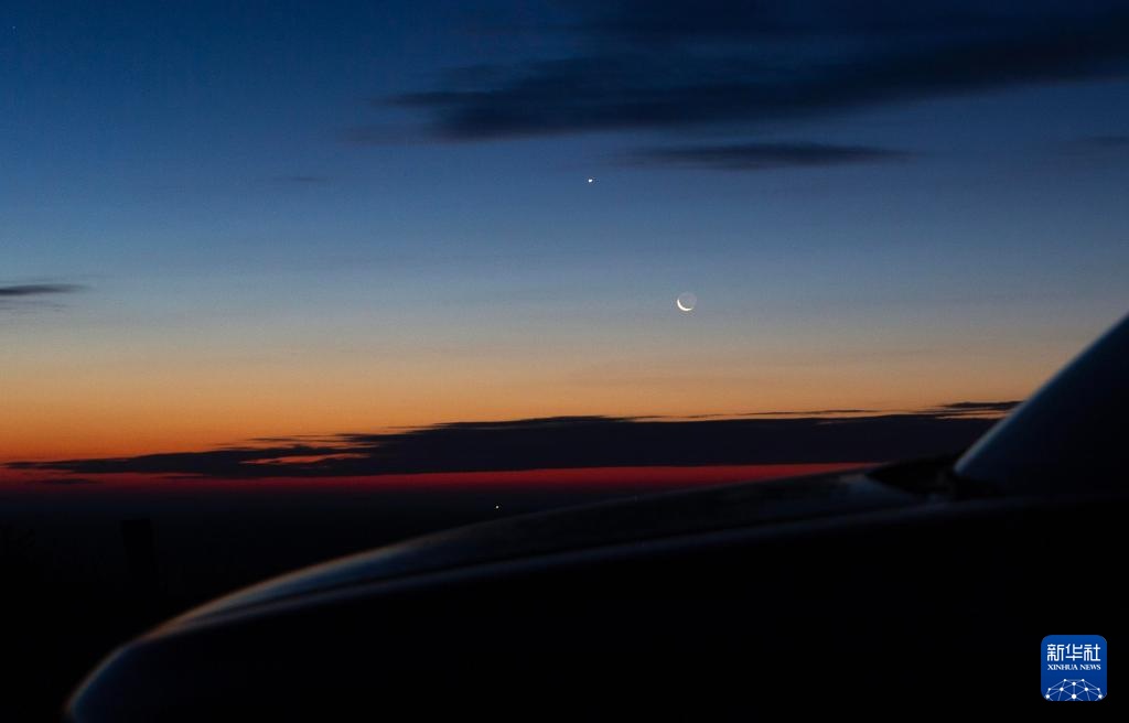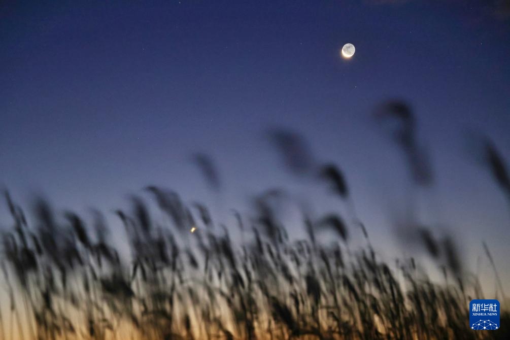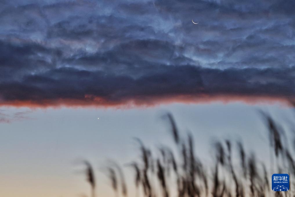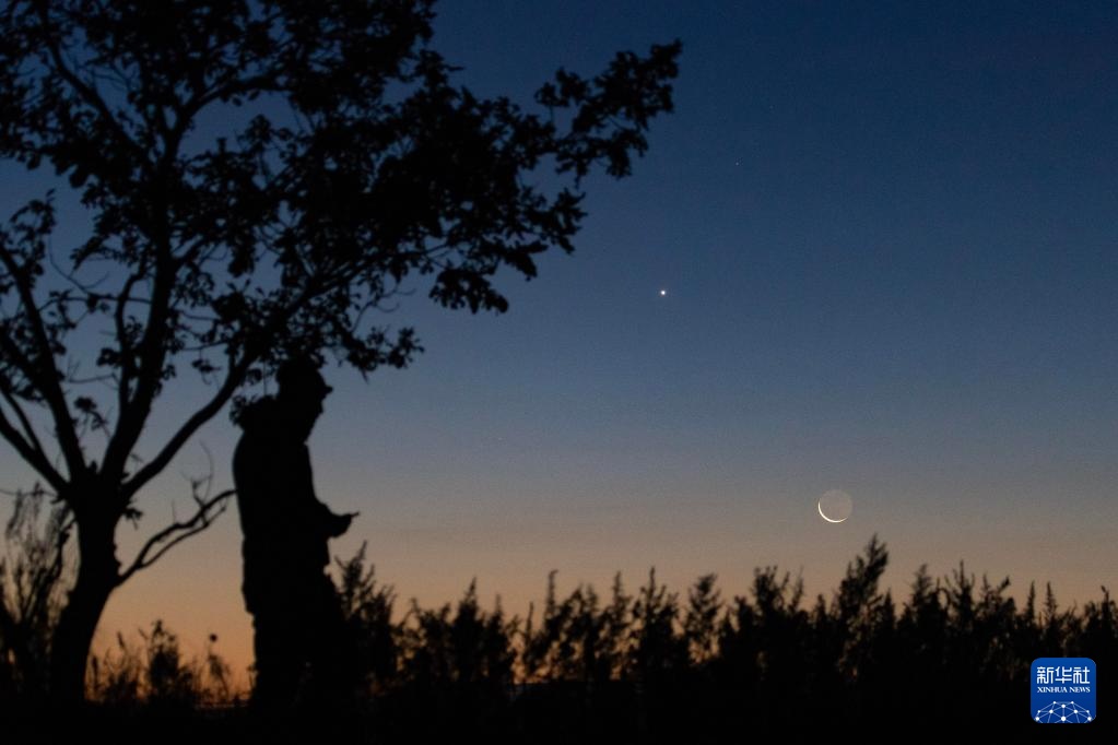 10月20日在黑龙江省齐齐哈尔市拍摄的启明星伴月。