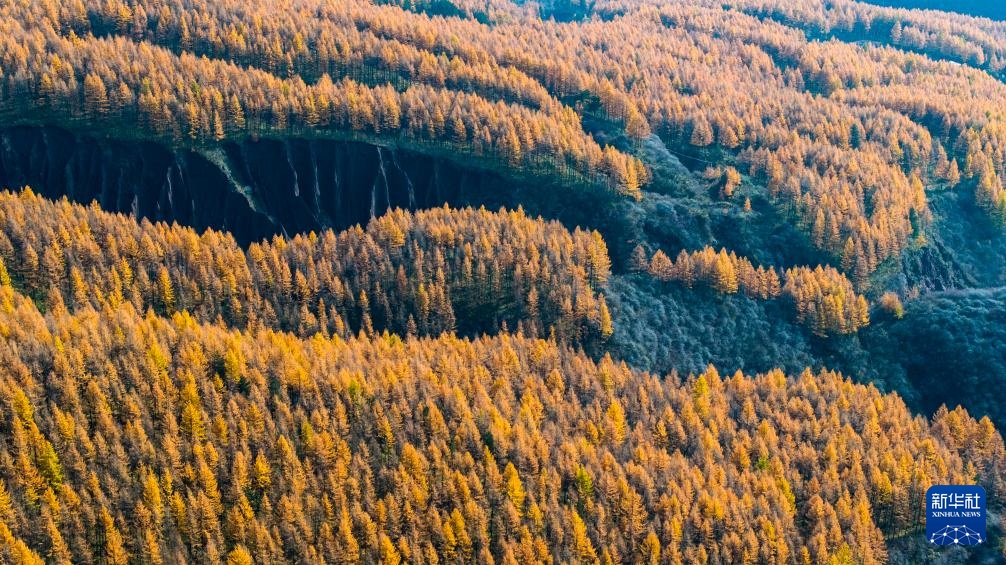 10月27日在宁夏固原市隆德县六盘山北联池拍摄的秋景(无人机照片)。