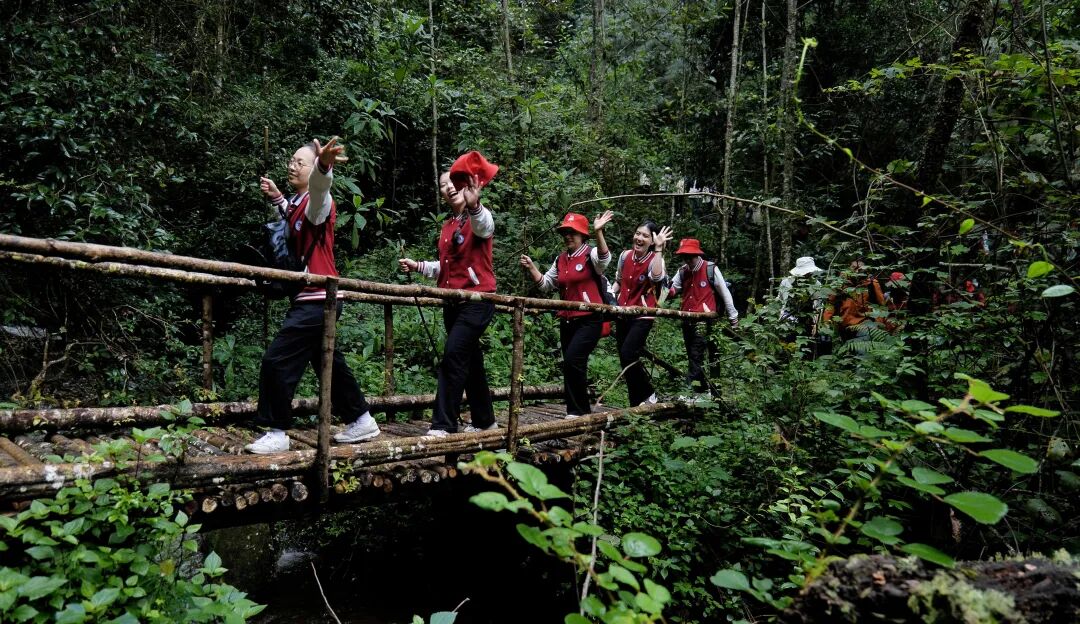 沿着蜿蜒山路上行至天堂山,沿江村则是另一番热闹景象。这里凭借94.6%的森林覆盖率,成功打造出“自在漭水、徒步天堂山”的旅游品牌。