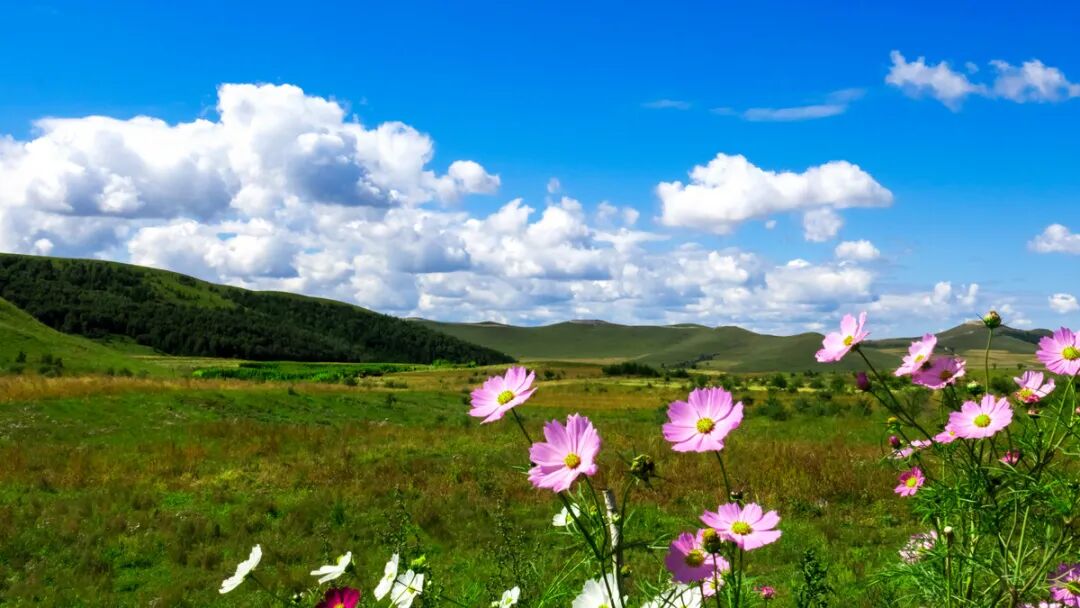 澄澈蓝天与柔软草甸温柔相拥